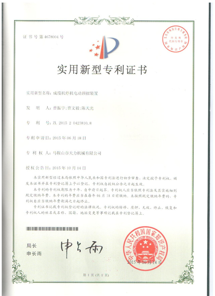 上一篇:2014年實(shí)用新型專(zhuān)利證書(shū)